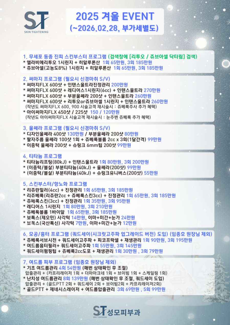 ST성모피부과 2025 겨울 EVENT (~2026.02.28, 부가세별도)